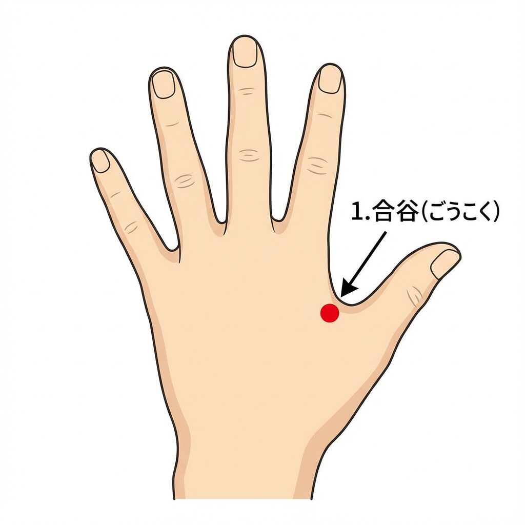 合谷は「万能のツボ」とも呼ばれ、肩こりだけでなく頭痛や目の疲れにも効果があります。